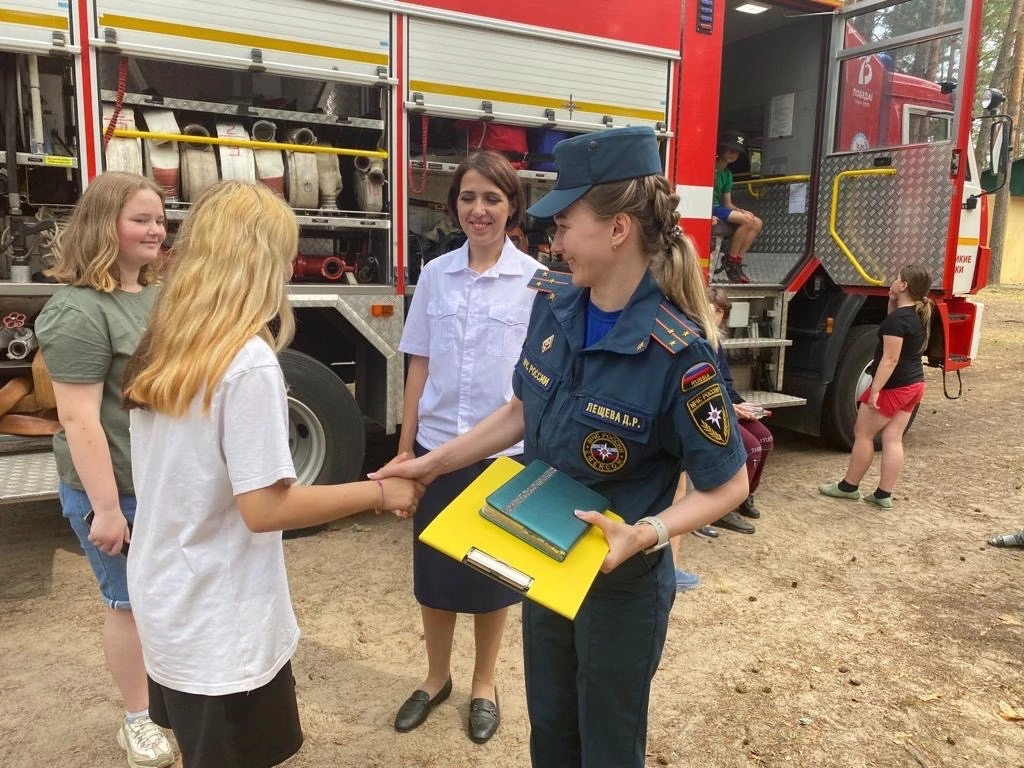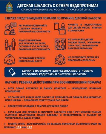 Специалист Псковского областного отделения ВДПО Яна Штыкова в ходе мероприятия напомнила детям об основных правилах пожарной безопасности, а именно: по какому номера телефона вызвать пожарных, что обязательно нужно назвать диспетчеру; как вести себя во время пожара и безопасно эвакуироваться из задымленного помещения.